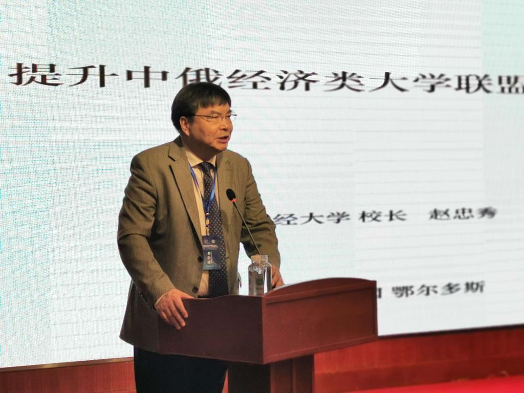 赵忠秀做了《提升中俄经济类大学联盟合作发展水平》的大会主旨发言,首先他对中俄经济类大学联盟成立6年来所取得的成绩进行了梳理和总结,指出现阶段联盟的发展还远远满足不了发展中俄新时代全面战略协作伙伴关系的需要,同时他对2019年6月5日中俄元首提出的将两国关系提升为“新时代中俄全面战略协作伙伴关系”的新定位进行了深度解读,并在此基础上提出了提升中俄经济类大学联盟合作发展水平的重要领域及实质举措。