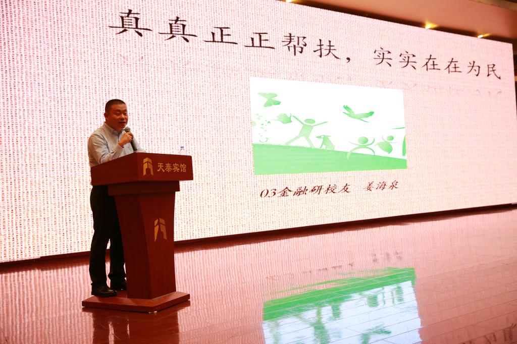 1993级财实校友,中央党校教授李鹏做了题为“为什么创新驱动姗姗来迟”的报告。2003级金融研究生校友、心系苗寨的“第一书记”姜海泉,现场倾情分享了他在贵州省黔东南州苗族山村驻村的感人故事;1997级国贸校友、Bizinsight总经理何业文以“做一个幸福的普通人”为题分享了她在数据分析、人工智能方面的探索以及大数据给她的成长、生活带来的幸福改变;2010级保险校友、健易保首席产品官陈修国介绍了他在保险方面的探索、创新和追求,希望用保险专业知识服务校友。