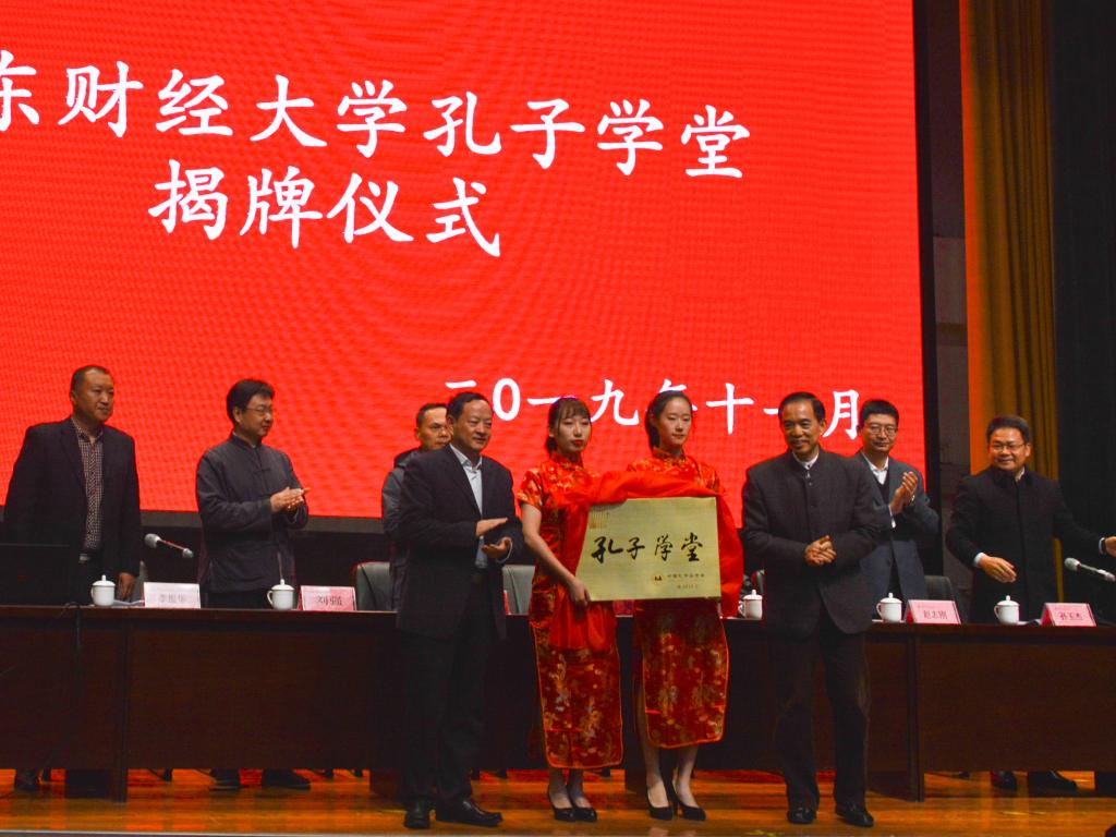 孔子学堂在山财大莱芜校区揭牌,旨在深入挖掘和阐发以爱国主义为核心的民族精神和以改革创新为核心的时代精神”,以及“讲仁爱、重民本、守诚信、崇正义、尚和合、求大同的时代价值,让财大学子深刻感受传统文化魅力,增强文化自觉,坚定文化自信。