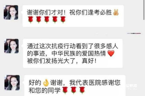 湖北省襄阳市中西医结合医院在收到山财大学子们捐赠的物资后,医院的医护人员也通过微信对山东财经大学的同学们表达了深深的谢意和美好的祝福。