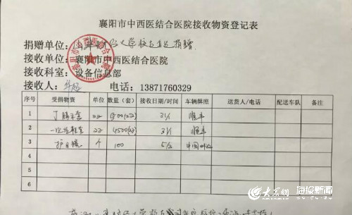 对于此次捐赠对象的选择,他们也做了全面的了解和考察。他们告诉记者:“鉴于目前武汉物流过于紧张,并且人们对武汉周边城市的关注度迅速提高,经过不断地沟通以及湖北省襄阳市本地的山财学子的帮助与考察确认,我们最终将捐赠对象定为一家襄阳市的救治定点医院襄阳市中西医结合医院。”