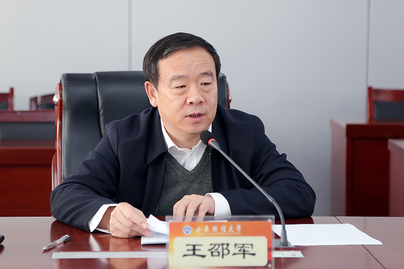 王邵军强调,要突出重点,全力推动高质量内涵发展,必须把握好八个方面。第一,坚决落实立德树人的根本任务。立德树人的成效将是第五轮学科评估的重点和根本标准,需要从多层面、多角度来统筹考虑,既要注重宏观把握,又要结合实际切入,做到点面结合,立体推进。第二,加快推进一流本科行动计划。要创新推进“课堂革命”,提升在线教学质量效果,完善在线开放课程建设,推动慕课和虚拟仿真实验教学应用。要强化通识教育,全力推行大类招生,创新宣传方式,密切生源联系,积极应对“专业+学校”的志愿报考方式。第三,全力备战第五轮学科评估。要紧贴指标,跟踪变化,精准发力,深度挖掘,集中优势力量,争取再上一个新台阶。第四,着力提升服务山东能级水平。要紧盯战略需求,瞄准国家地方重大需求,盯紧经济社会发展的重大问题,紧密对接省委八大发展战略,主动与地方挂钩,找到契合点,开展有针对性研究和集成攻关。要发挥学科优势,搞好科研攻关,全力推动山东区块链金融重点实验室、新旧动能转换研究院建设,力争在重大科研平台上实现新突破。第五,深入推进管理体制机制改革。要认真对接山东省高校分类考核方案和双一流建设方案,将人才培养质量、科研产出、社会服务水平、高层次人才引进等指标细化分解到各学院,考核结果将作为评先推优、干部选拔、绩效分配等政策支持和资源配置的重要依据。要开辟创新实验区,通过加强考核、转聘、高聘和提高待遇,鼓励引导教师走出传统发展通道,从根本上解决教师队伍老化、高职比过高、人均生产力不足问题。第六,持续创新优秀人才引进培育工作。要不拘一格,创新引才形式,用活招才引智平台,推动线上线下招聘相结合,千方百计完成年度引才目标。要打通政策通道,用心培育有财大情怀、财大责任和财大坚守的优秀人才。第七,系统推进治理体系治理能力现代化。要不断健全现代大学制度,重视发挥学术、教授委员会等学术组织作用,推动学术“去行政化”。要优化校区功能布局,全力推进主校区建设,确保图书馆等工程如期竣工。要积极筹备扩建二期工程,加快推进主校区教职工配套住宅项目。第八,切实提高党的建设质量。要贯彻落实党委领导下的校长负责制,严格执行民主集中制、民主生活会制度和双重组织生活制度。要建立“不忘初心、牢记使命”长效机制。要创新思想政治工作,严格落实意识形态工作责任制,加大疫情防控期间舆论引导力度。要以届中调整为契机,着力推进干部队伍年轻化、专业化。要履行好全面从严治党“两个责任”,持续开展作风专项整治行动。