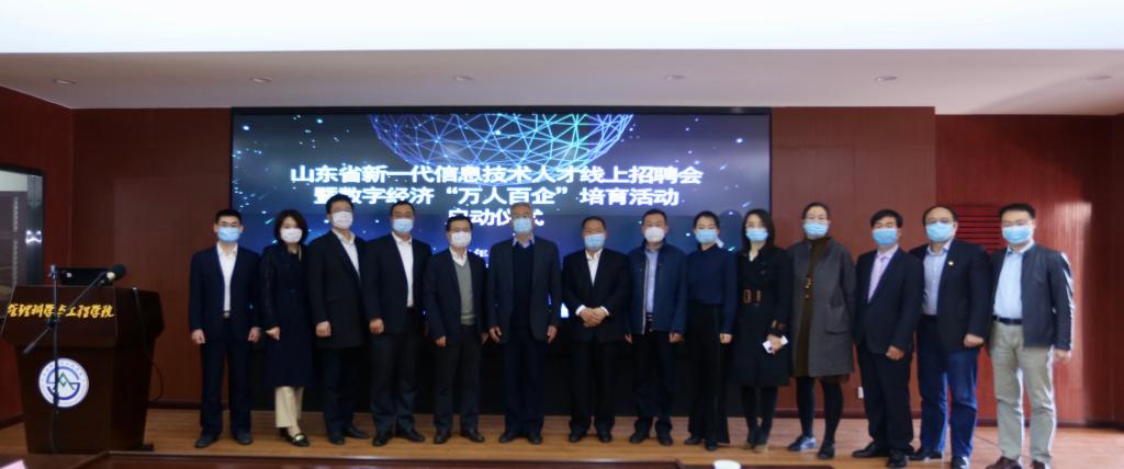 4月23日上午,由山东省工业和信息化厅和山东省大数据局指导,我校与山东省软件、电商、物流、电子、计算机等11家行业协会主办,就业指导处与管理科学与工程学院承办的“山东省新一代信息技术人才线上招聘会”启动仪式,在燕山校区举行。副校长张新,山东省工业和信息化厅软件与信息服务业处处长李元广,山东省大数据局产业推进处副处长卢修名,各协会组织的会长或秘书长、就业指导处、管理科学与工程学院负责人及部分企业代表出席了仪式,20所参与高校相关院系的师生在线上观看了仪式并参与了后面的招聘宣讲。
