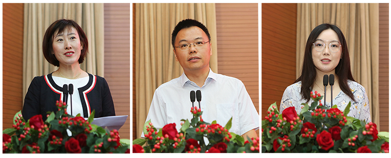 会上,“山东财经大学教学名师”、云端思政教学比赛一等奖获得者、工商管理学院王璟珉教授;“山东财经大学科研标兵”、财政税务学院马恩涛教授;2020级国际经贸学院博士研究生张潇叶分别发言。
