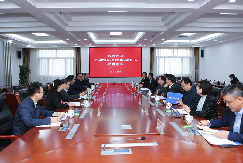 11月16日下午,对外经济贸易大学党委书记蒋庆哲一行到我校访问交流,校党委书记王邵军、校长赵忠秀在燕山校区会见了客人。