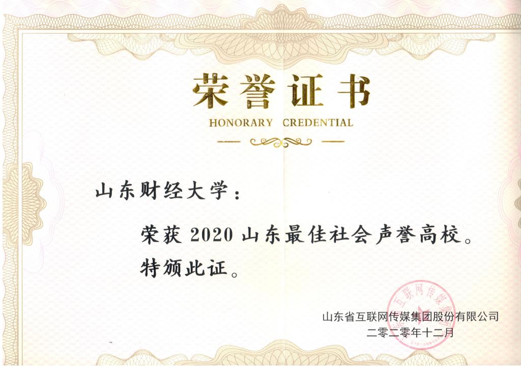 “2020山东最佳社会声誉奖”榜单是由省互联网传媒集团依据其舆情中心一年来采集到的各高校在报纸、电视、网站、论坛、客户端及微博、微信等全媒体平台上的正面信息,根据相关权重统计所得;“最具影响力教育政务融媒体”榜单是以各高校本年度发文超过6个月认证官方微信公众号为样本,依据发布的文章总数、阅读总数、点赞总数、头条文章阅读量等数据加权平均所得。