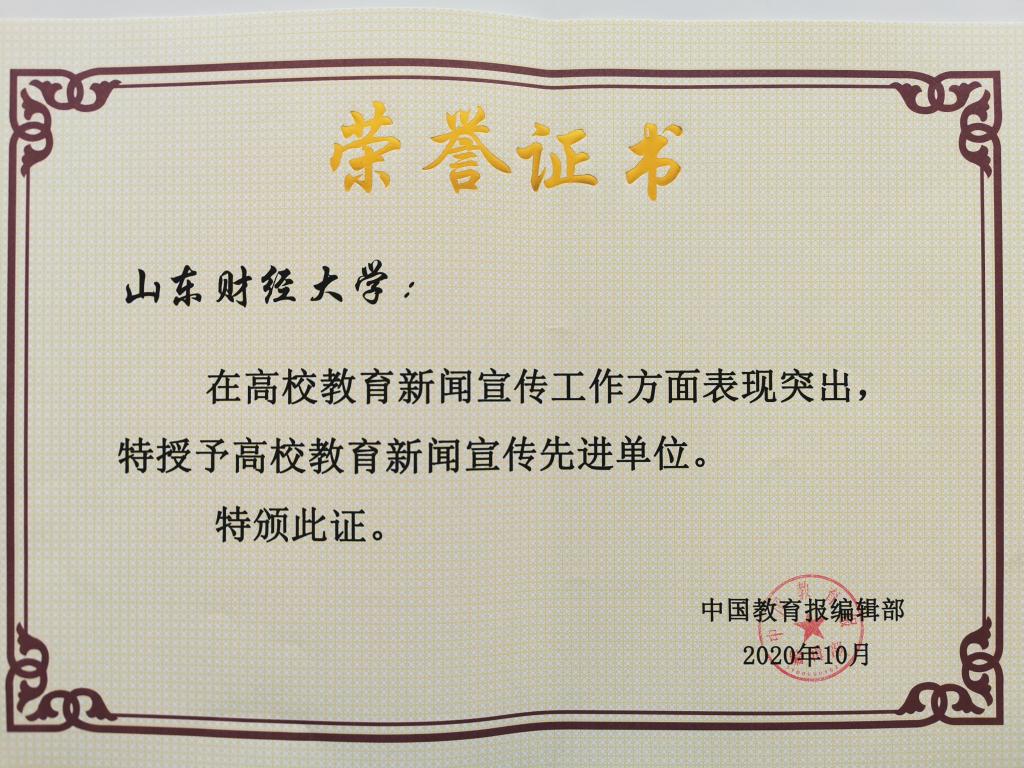 近期,学校还入选“人民网优秀校园新闻作品获选高校”,被评为中国教育报刊社“教育新闻宣传先进单位”,获齐鲁晚报“2020年度融媒传播最具影响力高校”以及“山东教育政务新媒体先进单位”、山东省首届高校思政短视频大赛优秀组织奖。在新浪山东发布的2020年度教育盛典荣耀榜单中,学校荣获“2020年度山东最具综合实力本科院校”“2020年度招生宣传锐意创新奖”“2020年度新媒体品质运营奖”等多个奖项。