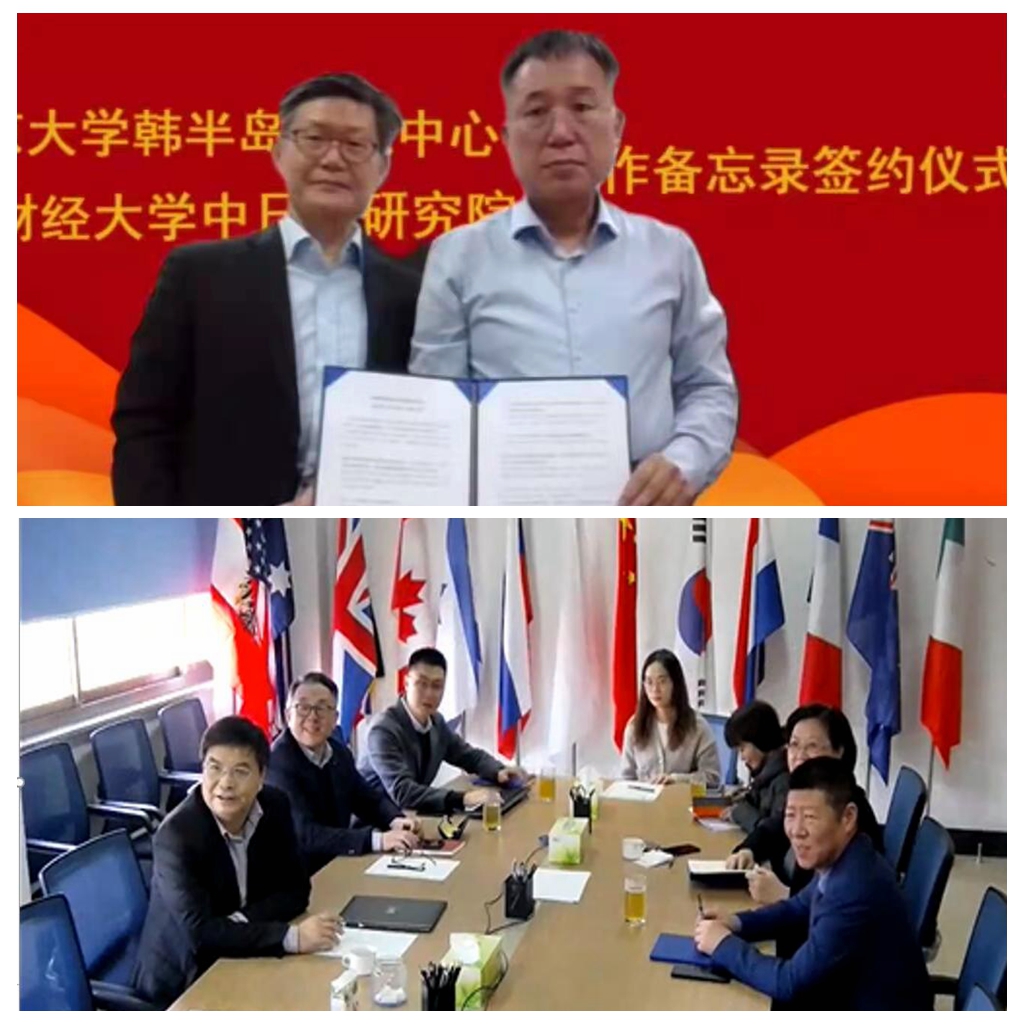 3月2日,我校中日韩研究院与北京大学韩半岛研究中心在线上举行合作备忘录签约仪式。校长赵忠秀、副校长陶虎,北京大学韩半岛研究中心主任金东吉(Kim Donggil)、研究员高永和(Ko Younghwa)出席签约仪式。国际交流与合作处、外国语学院、中日韩研究院相关负责同志,北京大学韩半岛研究中心师生代表参加会议。