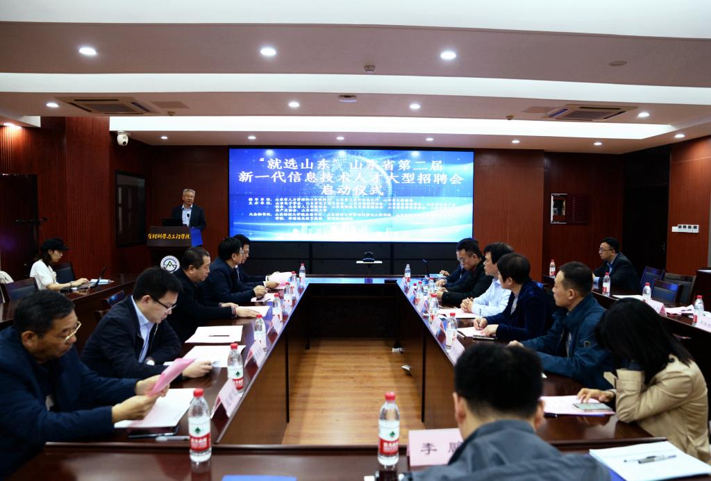 3月27日上午,由省人社厅、工信厅、大数据局指导,我校与山东省电子协会等9家省级协(学)会联合主办,山东大学、山东师范大学、青岛大学等省内三十余所高校共同协办,我校就业指导处、管科学院、计科学院具体承办的“就选山东”山东省新一代信息技术人才线上招聘会启动仪式在燕山校区逸夫楼举行。