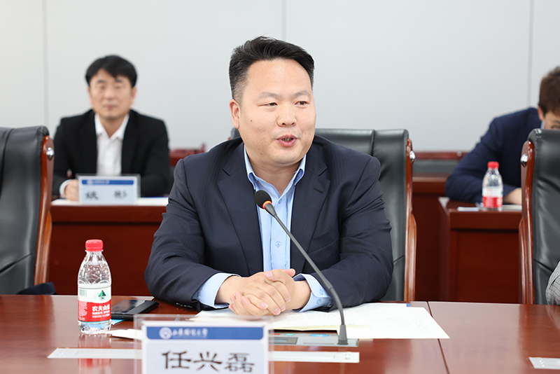 王邵军对任兴磊会长一行的到来表示热烈欢迎,向关心支持山东财经大学发展的各位朋友表示感谢。他简要介绍了山东财经大学的学科专业、科学研究、社会服务发展情况。他强调,学校始终贯彻服务国家重大战略,立足山东做好服务社会文章,紧密对接省委八大发展战略,以鲜明问题导向开展有针对性研究和集成攻关,先后与政府部门、行业协会、企事业单位等签订合作协议,推进了政产学研用的深度融合。他希望,双方以战略合作协议签约为契机,依托各自资源优势,整合产业链、创新链、教育链、人才链资源,共建共享资源平台,为产业与教育融合提供高质量资源供给,在供应链金融、金融科技、乡村振兴以及人才培养合作等方面密切合作、深度融通,打造合作新亮点,培育合作新特色,树立合作新典范,为山东实现高质量发展、建设新时代现代化强省做出新的更大贡献。