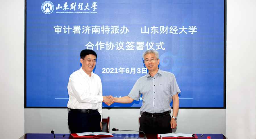 6月3日,山东财经大学与审计署驻济南特派员办事处合作协议签约仪式在燕山校区举行。校党委书记王邵军、副校长张新,审计署驻济南特派员办事处特派员许永利、副特派员王成等出席签约仪式并进行座谈,王邵军、许永利致词,张新、王成分别代表双方签约,张新主持签约仪式。