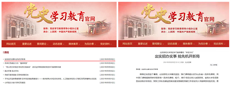 9月9日,中央党史学习教育官网刊发《山东财经大学党史学习教育重在“学史力行”——出实招办实事 抢先机开新局》一文,这是继7月22日刊发《山东财经大学党史学习教育:有创意 重宣讲 氛围浓》一文后,党史学习教育官网第二次宣传报道我校党史学习教育情况。