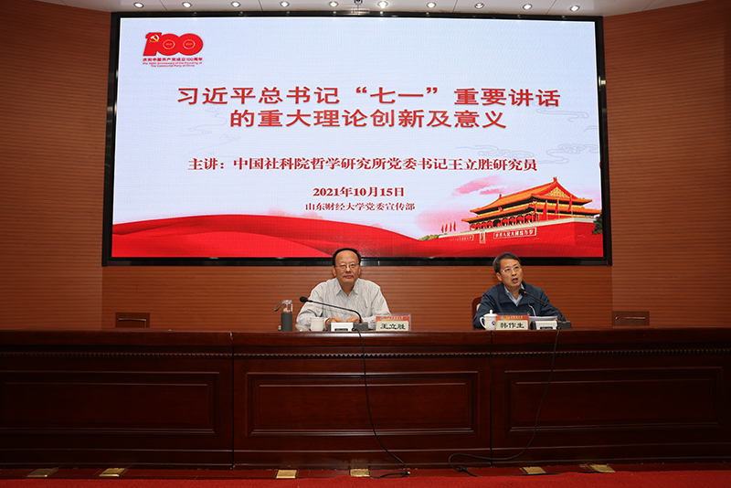 10月15日下午,中国社会科学院哲学研究所党委书记、中国社会科学院大学哲学院院长、博士生导师王立胜研究员应邀来我校,在燕山校区图书馆第一报告厅作了题为《习近平总书记“七一”重要讲话的重大理论创新及意义》的专题报告。校党委副书记韩作生主持了报告会。