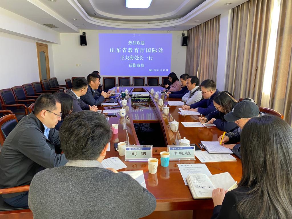 11月12日,山东省教育厅国际交流与合作处处长王夫海一行来我校调研学校国际化办学及山东省教育国际交流与合作研究中心工作进展情况。校长赵忠秀会见了客人。副校长陶虎及国际交流与合作处、山东省教育国际交流与合作研究中心有关负责人参加了座谈。