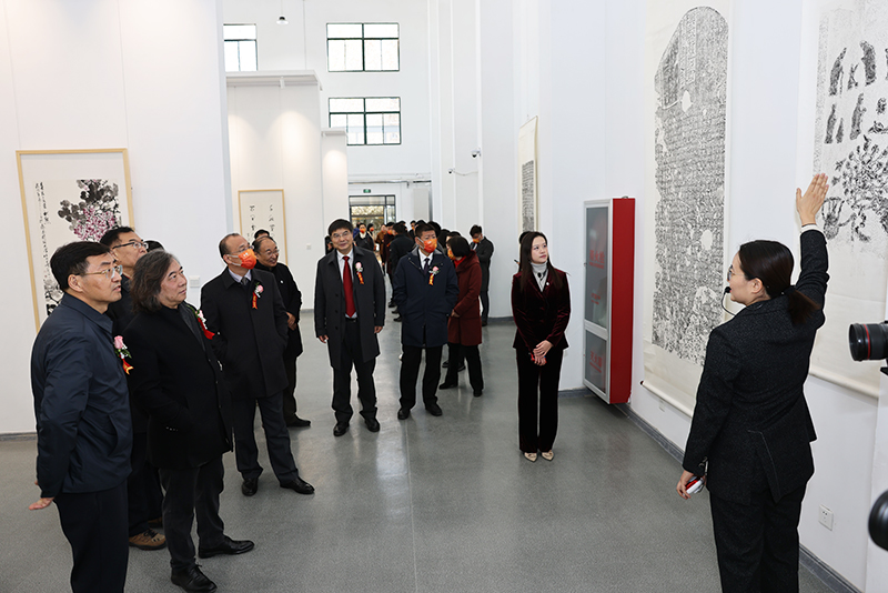 本次展出的100件藏品,为艺术学院长期以来收藏积累的秦、汉、魏晋南北朝的碑刻原拓及当代艺术名家作品,弥足珍贵。其中的《泰山刻石》《五凤二年刻石》《张迁碑》等拓片均为国内最具有代表性的碑版,具有重要的金石学和书法研究价值。《泗水升鼎》《孔子见老子》《七盘舞》等汉画像石拓片,特别是嘉祥武氏祠拓片内容丰富、题材多样,极富艺术价值,展览将持续到12月25日。