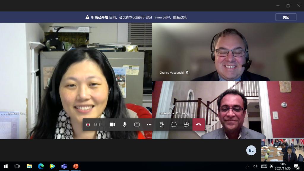 11月30日,校长赵忠秀与加拿大达尔豪斯大学理学院院长查尔斯·麦克唐纳德(Charles Macdonald)、助理副校长巴拉克里什南·里斯维拉什(Balakrishnan Prithiviraj)进行视频会谈。我校教务处、国际交流与合作处、统计学院、国际教育学院负责人等参加会议。