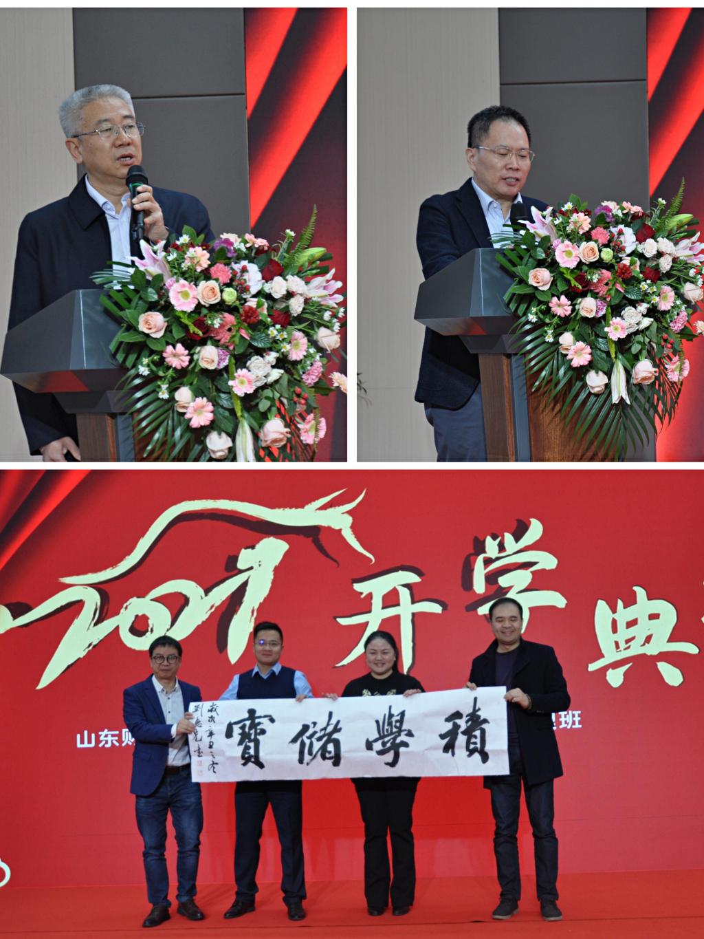 12月18日上午,山东财经大学MBA青岛金融创新管理班在日照银行青岛分行报告厅举行开班典礼。副校长张新、中国人民银行青岛市中心支行副行长张朝晖校友、青岛市金融管理局副局长王振校友、致公党青岛市副主委郭振栋校友,山东财经大学校友会副会长、众地阳光集团有限公司董事长王文正校友,日照银行青岛分行党委书记、行长安佰刚校友等领导嘉宾、校友代表以及学校合作发展处、MBA学院、团委、就业指导处等相关部门负责人、青岛金融创新管理班学员参加活动。张新、王文正、安佰刚先后致辞,青岛金融创新管理班班长、青岛鑫源集团总经理辛亚琴代表学员发言,西泽学院联合创始人、院长赵健校友作主题演讲。