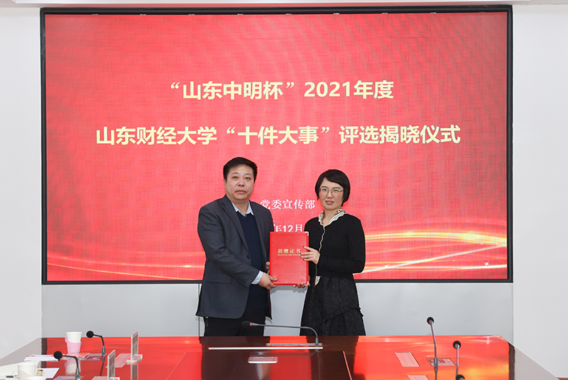 日月其迈,岁律更新。12月31日上午,燕山校区办公楼七层会议室暖意融融、喜气洋洋,“山东中明杯”2021年度山东财经大学“十件大事”评选揭晓仪式在这里举行。这一师生、校友共同期盼的年终盛事,自2016年开始评选,至今已连续举办六次。