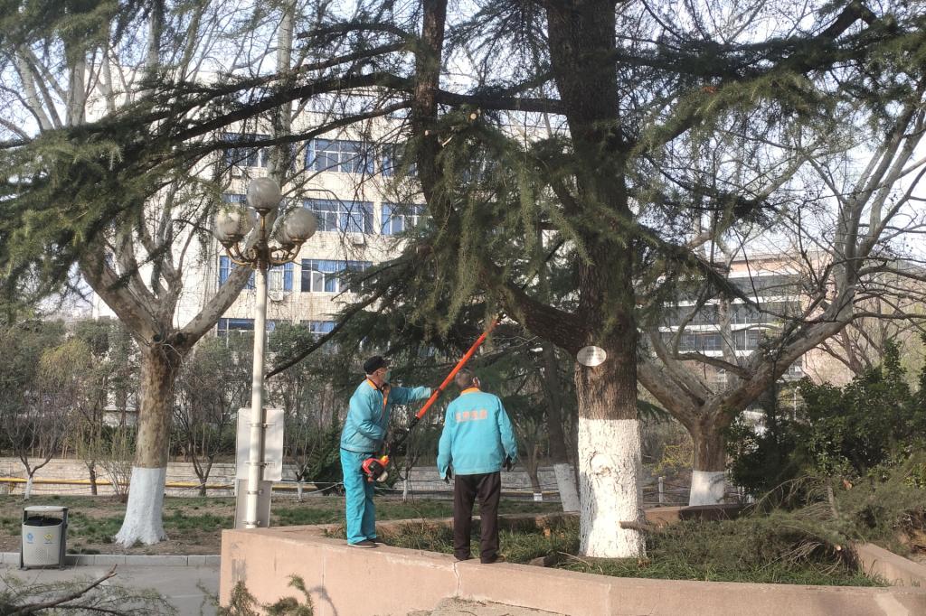 为进一步巩固提升燕山校区、舜耕校区多年的绿色校园建设成果,学校开启了“修枝塑形”模式。一是抓住行道树修剪重要期,在市园林绿化专家的技术指导下,物业公司组织技术人员对部分行道树进行修剪整形,保持树形整齐美观,突出绿化观赏性,并对绿篱和球体进行修剪,确保苗木返青前完成第一轮修剪工作。二是裸露地表植草绿化。学校根据校区裸露土地治理要求及绿篱裸露绿地进行整理补植养护,为师生营造鲜花满眼、绿满枝头的舒适环境。三是天空“蜘蛛网”电线入地,确保建筑物顶层通讯设施规范美观。四是消除校园“牛皮癣”,整治校园广告乱贴乱挂现象。