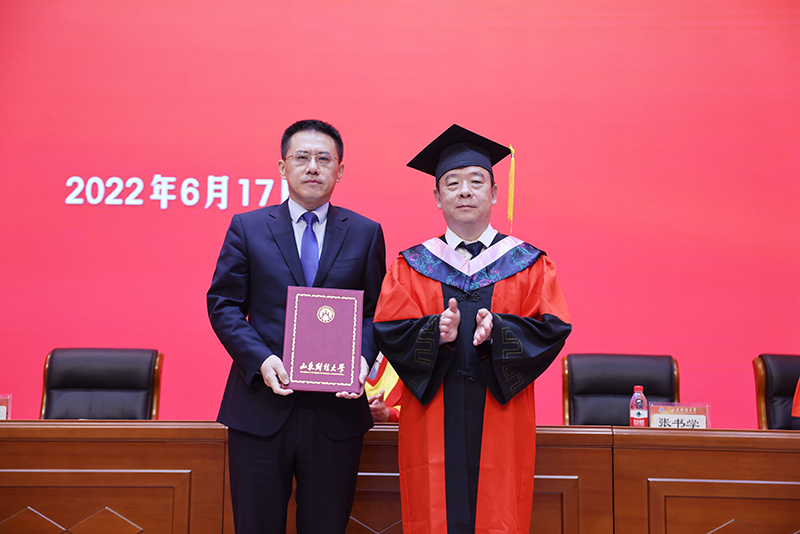 骊歌声起,青春远行。6月17日上午,山东财经大学2022年毕业典礼暨学位授予仪式在圣井校区图书馆报告厅隆重举行。校党委书记王邵军,校长赵忠秀,副校长陈晓兰、张新、张培国、陶虎,校纪委书记、山东省监察委员会驻山东财经大学监察专员王福岱以及各教学单位、部分职能部门负责人,校友代表、教师代表、毕业生代表参加典礼,共同见证毕业的荣耀时刻,分享开启新征程的喜悦。副校长张书学主持了典礼仪式。