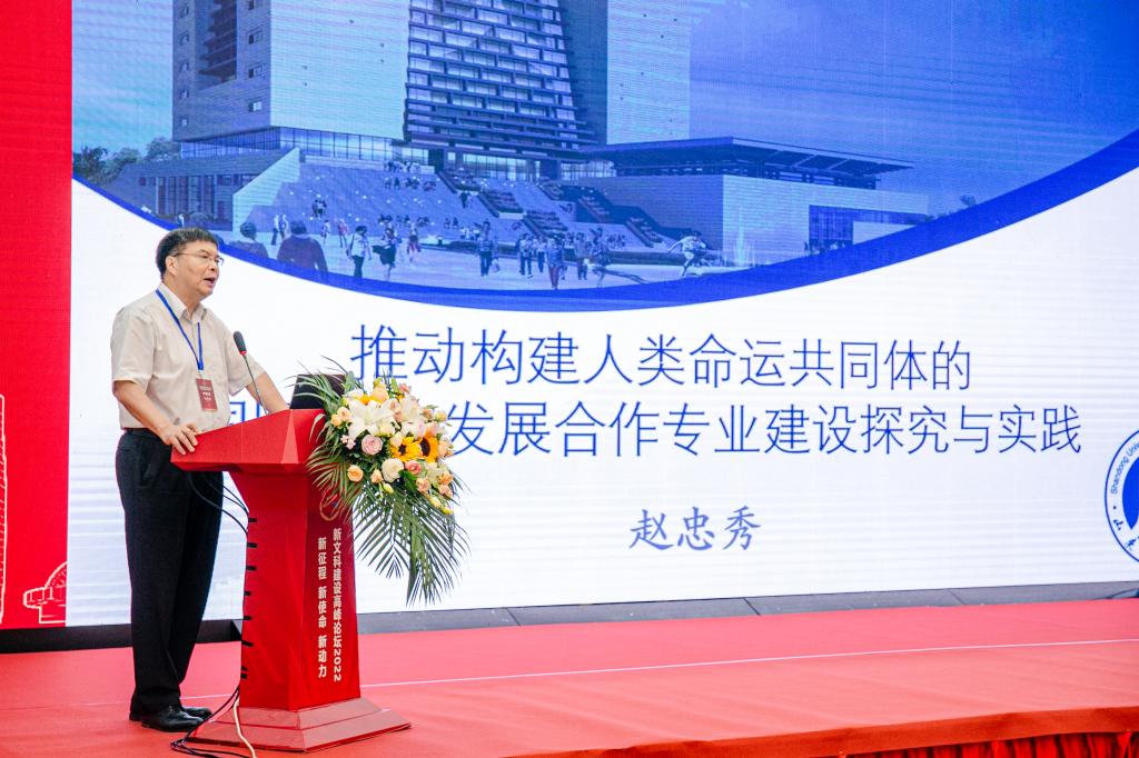 为深入贯彻落实习近平总书记在中国人民大学考察时的重要讲话精神,推动新文科建设再深化、再出发、再突破,7月18日-19日,“新文科建设高峰论坛2022”在山东青岛举行。论坛由教育部高等教育司、山东省教育厅指导,山东大学主办,全国新文科教育研究中心和青岛大学承办。我校校长赵忠秀应邀出席并做主题报告。