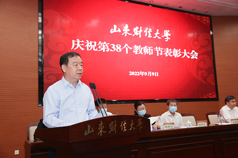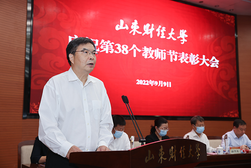 金秋送爽,丹桂飘香。9月9日上午,山东财经大学庆祝第38个教师节表彰大会在燕山校区第一报告厅举行,慰问从事高等教育满30周年的教职员工,表彰教学、科研工作的先进典型。校党委书记王邵军出席会议并讲话,校长赵忠秀主持会议,校领导韩作生、张培国、陈晓兰、张书学、陶虎、王福岱、张红霞、谢申祥出席会议。