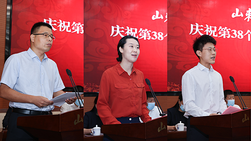 会上,山东省优秀研究生指导教师代表、保险学院于文广教授,新入职教师代表、会计学院杨晋璇博士,学生代表、马克思主义学院硕士研究生孟祥宇分别发言。