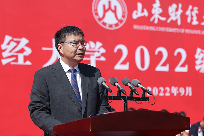 克明峻德,激扬青春梦想;格物致知,创新求真致远。9月30日上午,山东财经大学2022级新生开学典礼在圣井校区田径场举行。校长赵忠秀,校党委副书记张培国,副校长张书学、张新、陶虎,纪委书记、山东省监察委员会驻山东财经大学监察专员王福岱,副校长张红霞、谢申祥,1999级经济学专业校友、中央“马工程”修订专家、山东省泰山学者青年专家、曲阜师范大学副校长刘刚,教师代表、学校“最美教师”和教书育人楷模、全网粉丝450万网红老师、统计与数学学院宋浩副教授等出席典礼。典礼由陶虎主持。
