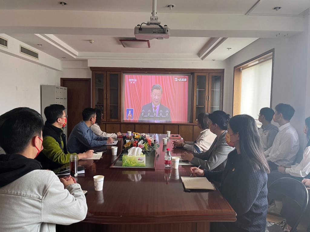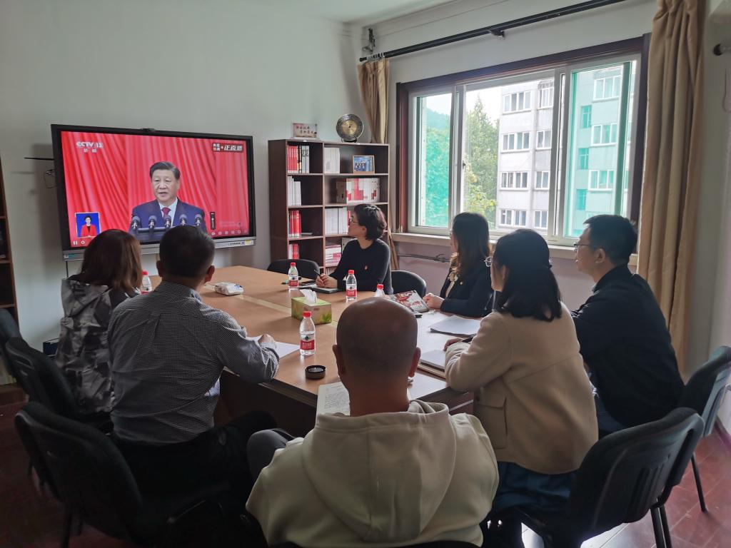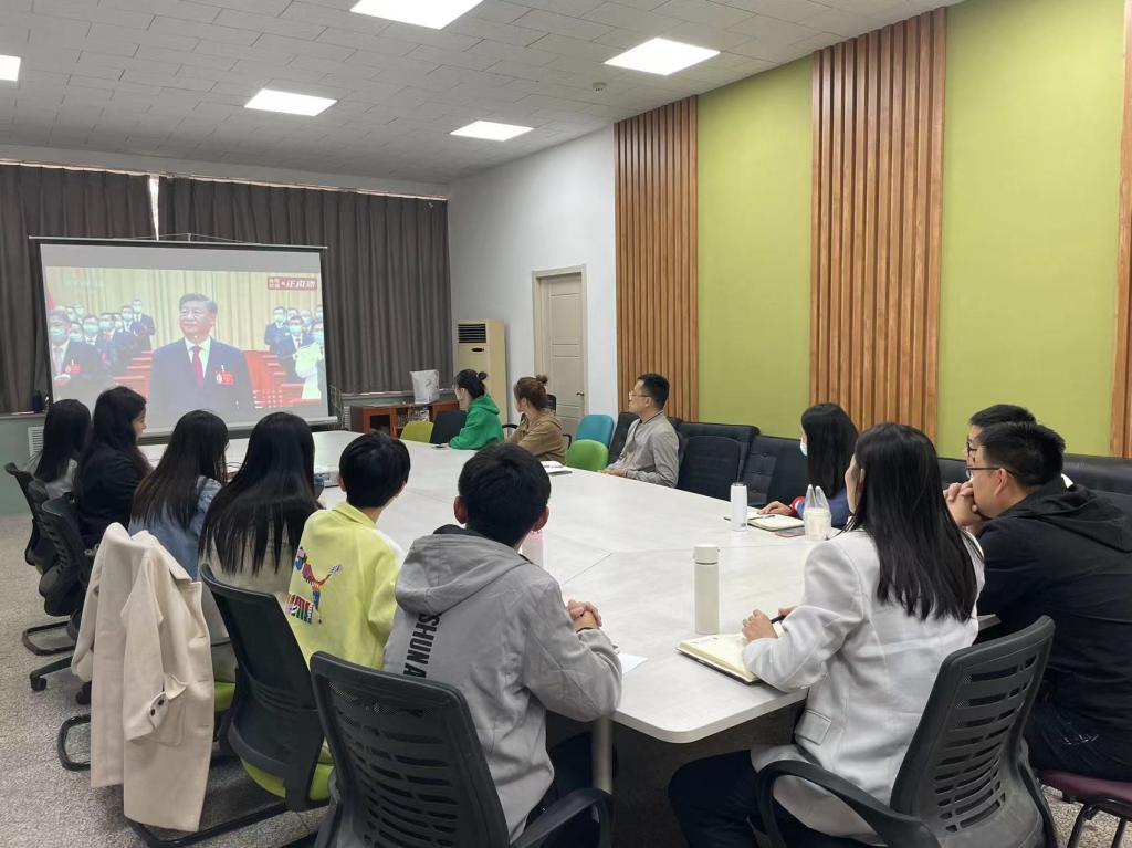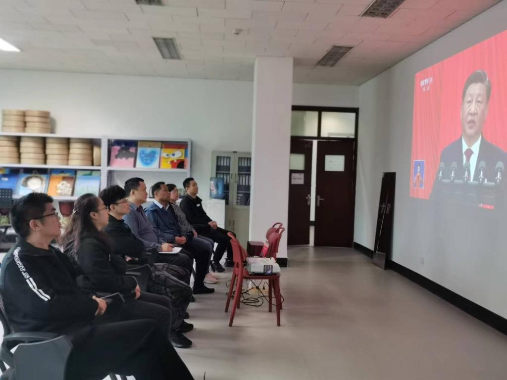各学院、其他职能部门、群团组织和教辅单位等组织干部职工在各会议室集中收听收看开幕会盛况。