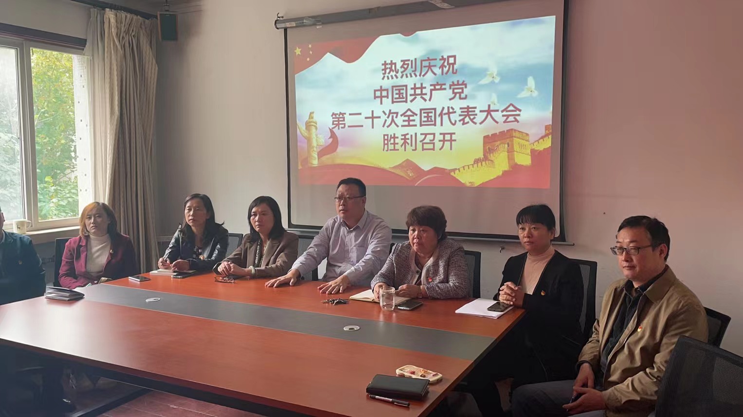 校党委书记王邵军,校长赵忠秀,党委副书记张培国,副校长陈晓兰、张书学、张新、陶虎,纪委书记、监察专员王福岱,副校长张红霞、谢申祥以及党委职能部门处级干部在燕山校区办公楼七层会议室集中收看,机关行政处室主要负责人在二层会议室集中收看。