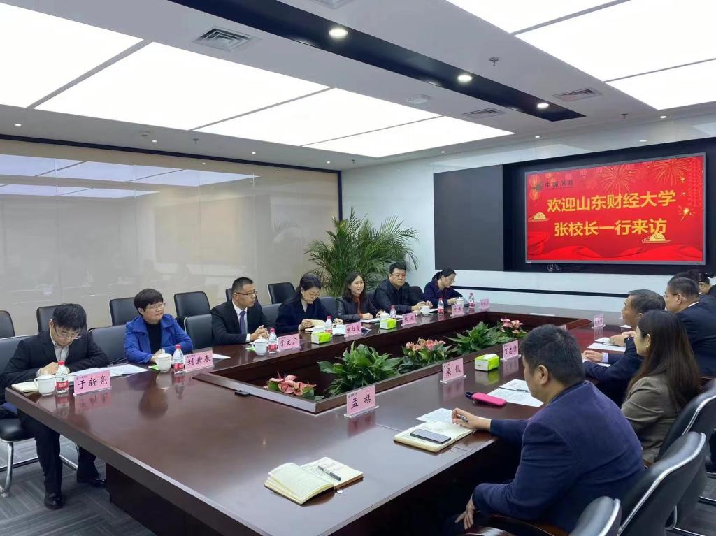 随后张红霞一行来到中邮保险山东分公司,在总经理丁志强的陪同下参观了公司党建活动室、业务洽谈室等办公场所,详细了解企业文化和公司发展情况。座谈会上,丁志强充分肯定了山财大校友为企业作出的积极贡献,双方就校企合作发展模式、学生就业岗位需求等问题进行了深入交流,对校企合作的基本构想达成共识。