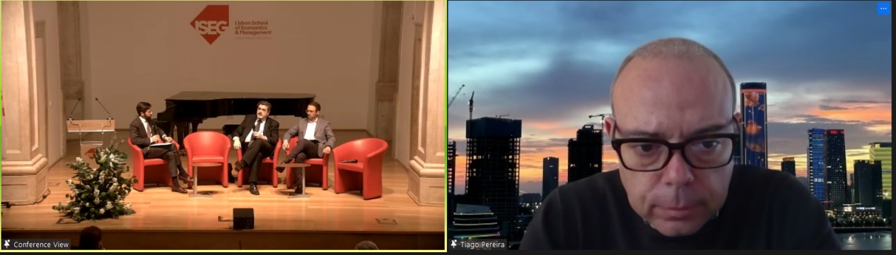 赵本堂深入解读中共二十大会议精神,阐释双循环战略的实质内涵,希望葡方抓住中国超大规模市场优势,通过参与中国经济大循环,深度融入中国经济循环圈,共享发展红利;赵忠秀回顾了中葡交往历史与双边经贸合作情况,高度赞扬了葡萄牙在构建与中国全面战略伙伴关系以及践行“一带一路”倡议中的卓越贡献,表示愿在已有合作基础上,进一步加强同里斯本大学经济与管理学院的交流互鉴;何塞·韦里西莫介绍中葡学术交流合作历史,强调中国经济发展将为中葡经贸合作提供新机遇;费尔南达·伊拉玉表示,中国审时度势在“十四五”规划中提出以高质量发展为主题推动经济社会发展和双循环战略,中葡两国机构和企业将在中国新发展格局中更好地开展互利合作。
