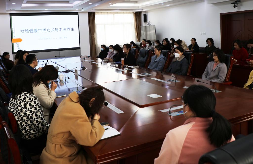 读书健身两相宜,多彩活动聚人心。为提高女教职工的养生保健意识和身心健康水平,3月3日上午,校工会、妇委会邀请山东中医药大学教授、主任医师胡军讲授“女性健康生活方式与中医养生”保健知识,各二级工会女工委员、女教职工代表50余人聆听了讲座。大家纷纷表示受益良多,在今后的日常工作生活中要合理运用学到的健康知识,做到合理作息、健康饮食、加强锻炼、科学排压、自我减压,以更加强健的体魄、健康的心理、饱满的精神投入到繁忙的工作和生活中去。