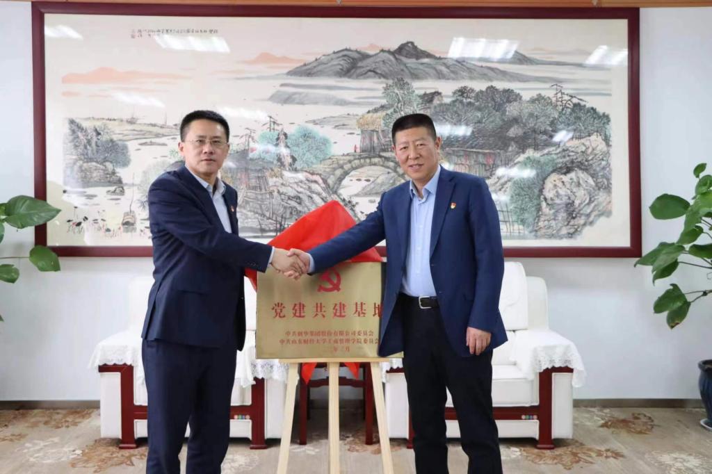 仪式上,工商管理学院党委书记赵世民与润华集团党委委员、人力资源总监夏晓军共同签署了党建共建协议书。副校长陶虎与润华集团总裁任鹤年共同为党建共建基地揭牌。