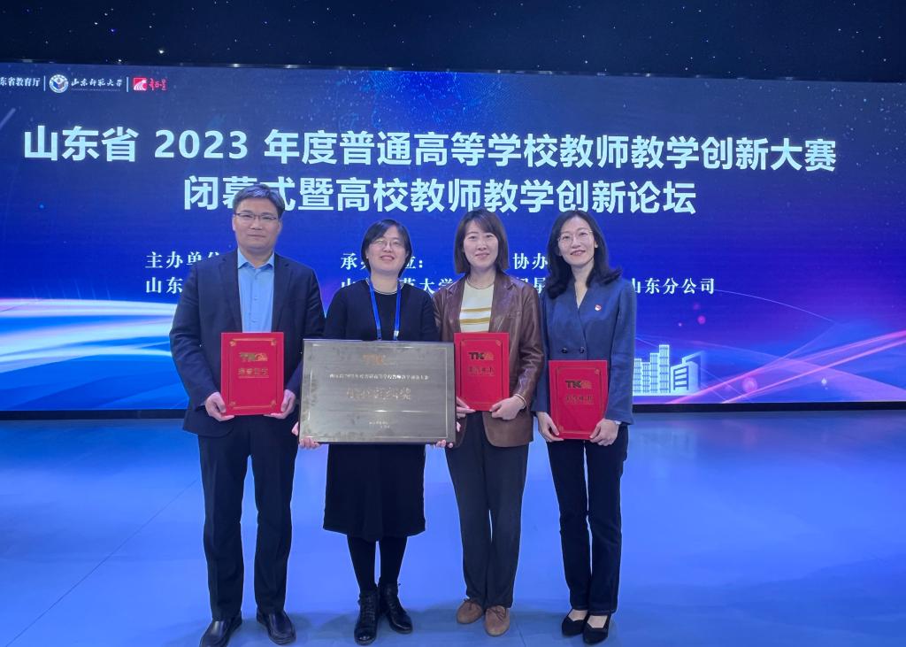 近日,山东省普通高等学校教师教学创新大赛决赛落下帷幕,经过激烈角逐,我校推荐的6位教师(团队)全部获奖,力夺一等奖3项、二等奖2项、三等奖1项,一等奖获奖数量位列省属高校第3,毕继东、国赟2位教师(团队)获推参加国赛,国赟作为教师代表在省颁奖仪式发言,学校获“优秀组织奖”。