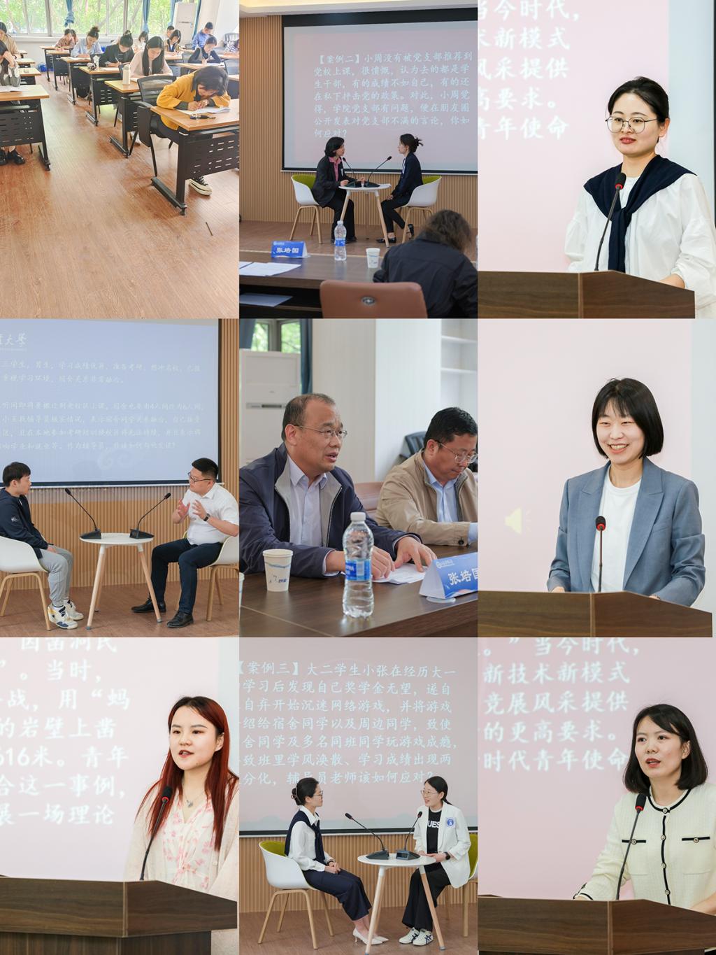 本次大赛包含“基础知识测试”“理论宣讲”“谈心谈话”和“案例分析”四个环节。参赛选手围绕学习贯彻落实习近平新时代中国特色社会主义思想,立足时代发展新要求和学生成长新特点,诠释初心使命,展现了辅导员的专业能力和水平。
