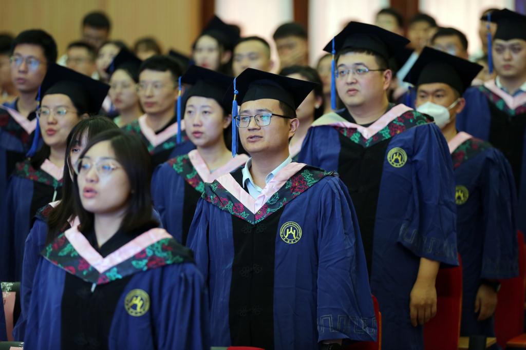 毕业典礼在庄严肃穆的国歌声中拉开序幕。张培国首先致辞,他向122名MPA毕业生致以热烈的祝贺和诚挚的祝福,回顾了本届毕业生新冠肺炎疫情中难忘的成长经历,鼓励大家要终身学习,把握求知的主动;创新突破,把握立业的主动;爱国报国,把握人生的主动。希望同学们牢记“克明峻德,格物致知”的校训,脚踏实地、勤勉耕耘,并表示母校永远是毕业生坚强的后盾和精神家园,欢迎同学们常回家看看,祝福毕业生们鹏程万里、前程似锦。