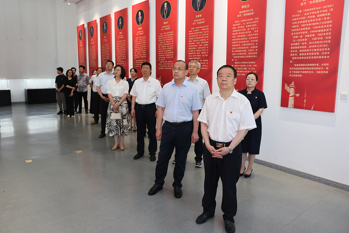 在喜迎党的102岁生日之际,正值全党开展学习贯彻习近平新时代中国特色社会主义思想教育时刻,6月30日上午,校党委书记王邵军,校领导班子成员张培国、陈晓兰、张新、陶虎、王福岱,校党委委员、党委统战部部长邓迎迎一同参观“弘扬功勋精神,礼赞时代楷模”——庆祝建党102周年功勋人物主题展,学习功勋人物先进事迹,重温入党誓词,用初心使命汇聚起推动学校高质量发展的强大动力。