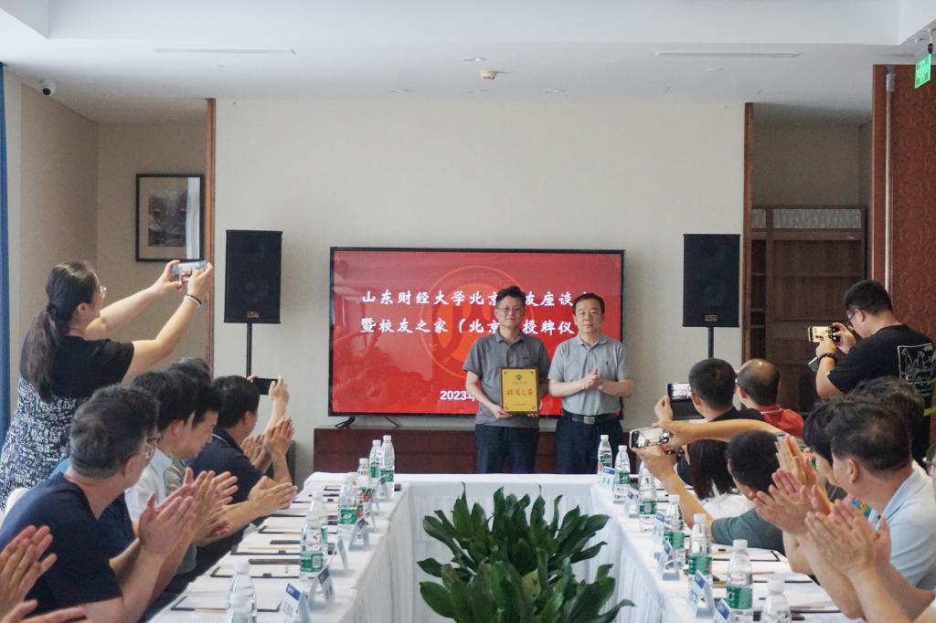 王邵军为北京校友之家授牌并表示祝贺。88级校友、北京中汇财信集团有限公司董事长、山东财经大学校友会副会长孙海华接受授牌,并表示一定齐心协力把北京校友之家努力打造成传承财大文化、凝聚校友感情、共享信息资源、服务社会发展的温馨家园。
