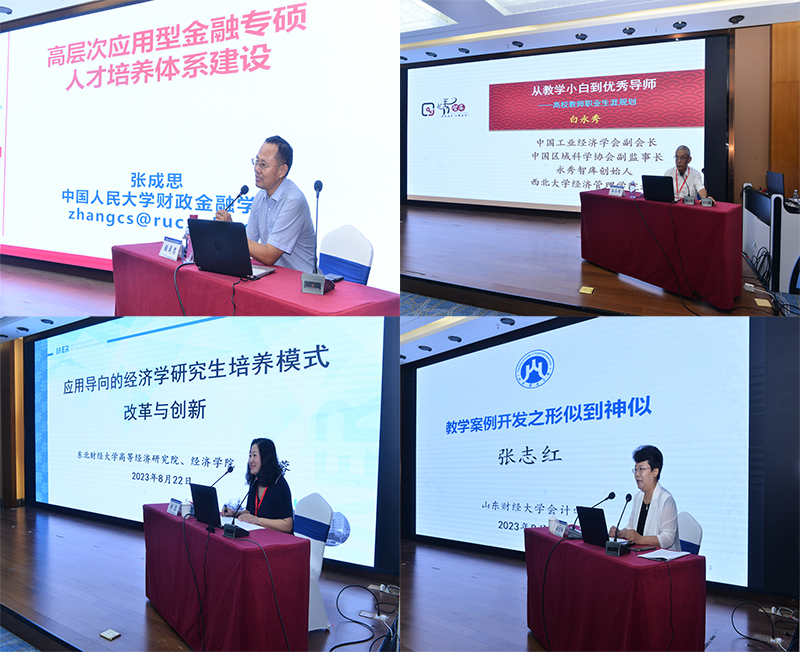 工作坊采取优秀教学成果示范、分组研讨、现场教学、经验交流与分享相结合的方式进行。教育部长江学者、中国人民大学张成思教授,西北大学经济管理学院白永秀教授,东北财经大学经济学院胡蓉教授,山东财经大学张志红教授分别作经验分享和教学成果示范。白永秀结合自身多年培养研究生的经历,分享了一名优秀导师的成长经验,为导师们提出了中肯建议。张成思、胡蓉分别从专业学位研究生和学术学位研究生培养角度,详细介绍了他们在高层次应用型人才培养改革和创新实践的探索和成果。张志红则以优秀教学案例为切入点,对如何设计和开发专业学位教学案例进行了分析和讲解。