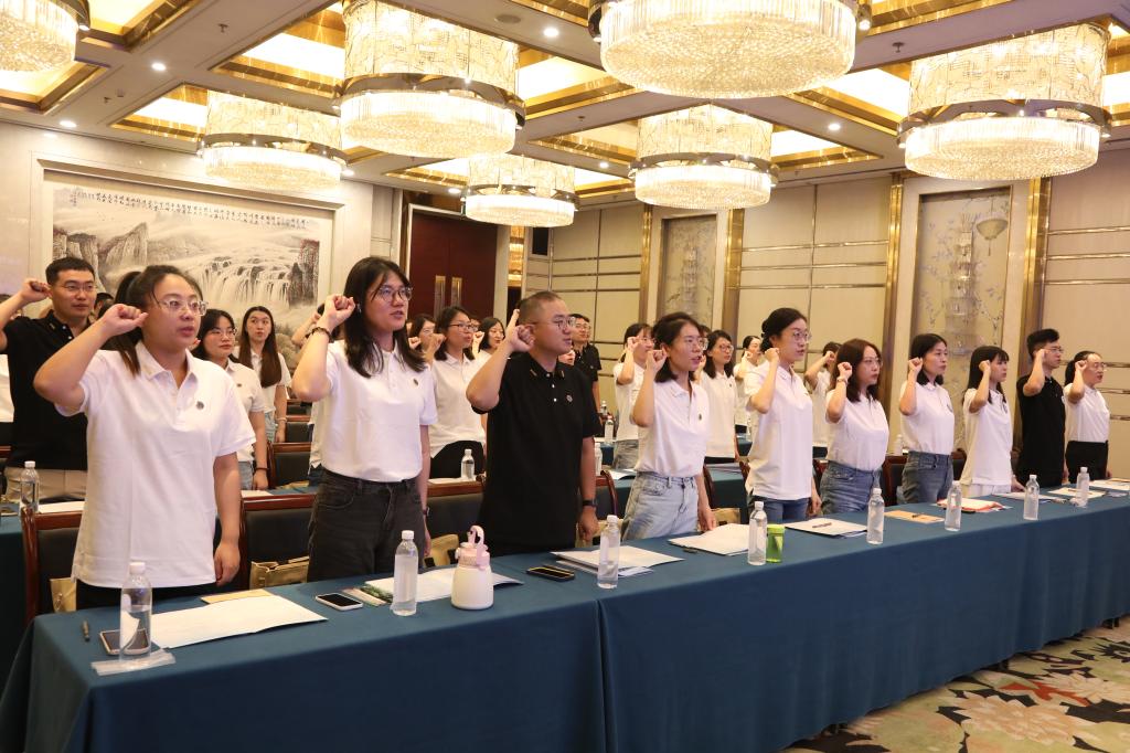 开班仪式上,王邵军,陈晓兰,优秀校友代表、山东农业大学副校长高立明等为新进教师颁发校徽,新进教师颜冠鹏带领大家进行入职宣誓并签署师德承诺书。