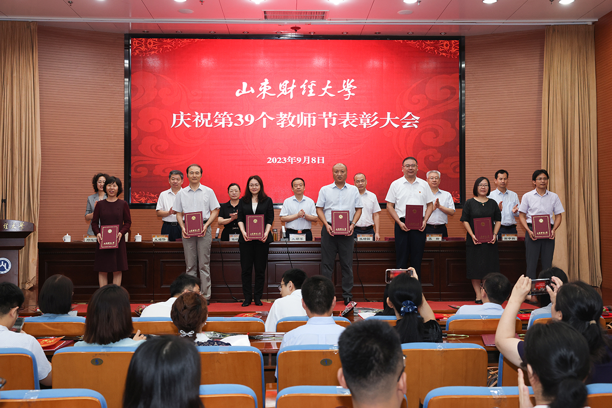 金风送爽,硕果飘香。9月8日上午,山东财经大学庆祝第39个教师节表彰大会在燕山校区举行,慰问从事高等教育满30周年的在职教职工,表彰教学、科研、党建思政工作的先进典型。校党委书记王邵军出席会议并讲话,校党委副书记张培国主持会议,副校长陈晓兰、张新,纪委书记、监察专员王福岱,副校长谢申祥,校党委委员、统战部部长邓迎迎出席会议。