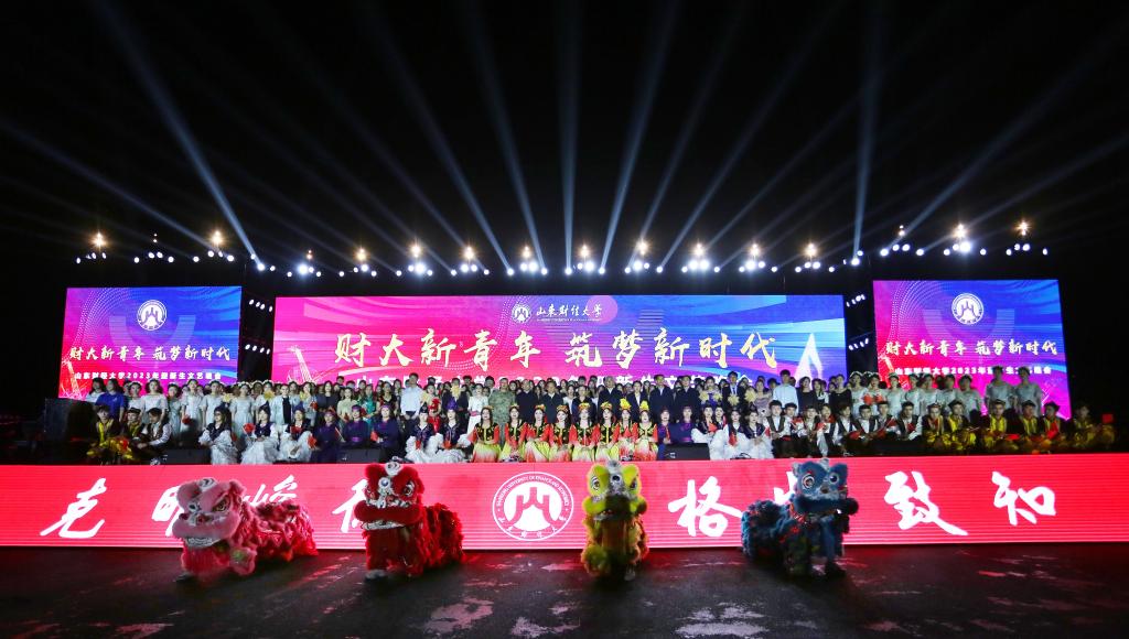 晚会通过歌舞、合唱、武术、器乐、话剧、朗诵等丰富多样的艺术形式,演绎了一场精彩纷呈的文艺视听盛宴,展现了财大新青年的蓬勃朝气和青春风采,展示了山东财大的文化底蕴和多彩校园生活,在“以美育人、以文化人”的浓厚氛围中,凝聚了新生精神共识,为更好担负起新的历史使命注入青春力量。