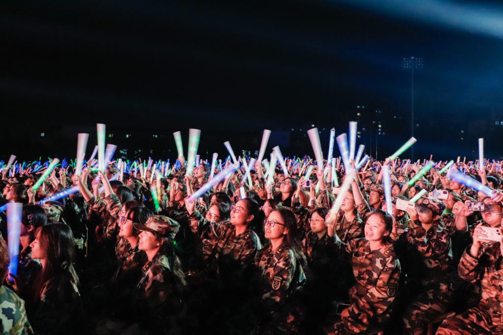 全体新生军训教官展示了军事格斗《请党放心,强国有我》,教官们动作整齐划一、气势如虹,一招一式表达了坚定强军信念、忠实履行使命,引来全场阵阵惊呼和掌声。晚会在全体新生辅导员歌唱《我和我的祖国》中落下帷幕,全场观众齐声合唱,歌颂盛世华章,表达对祖国母亲的祝福。