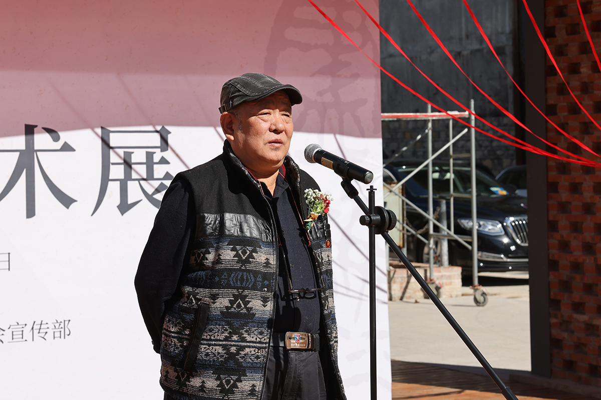 范正红在开幕式上致答谢辞。他表示,从艺近五十年、在山财大任教近三十年来,得到了各位领导和同行的关心帮助,心存感激。原本计划的艺术展是作为向山东财经大学校庆70年的献礼项目,但因为疫情延误至今;多年来自己在艺术学习实践中一直自然而然地将诗、书、画、印相融通,其中得益于家乡孔孟故里的文化滋养。数十载对中国传统文化与艺术的探索矢志不移、心摹手追,诗词以旷达高逸韵致为基调抒发辽远心境;书法追求苍逸超迈的意韵;国画以山水为主,探索笔墨表现力,参化其奥妙;篆刻则立足古玺,以刀为笔而写自家金石气质。希望通过这次艺术展,接受社会各界及艺术同道的检阅。