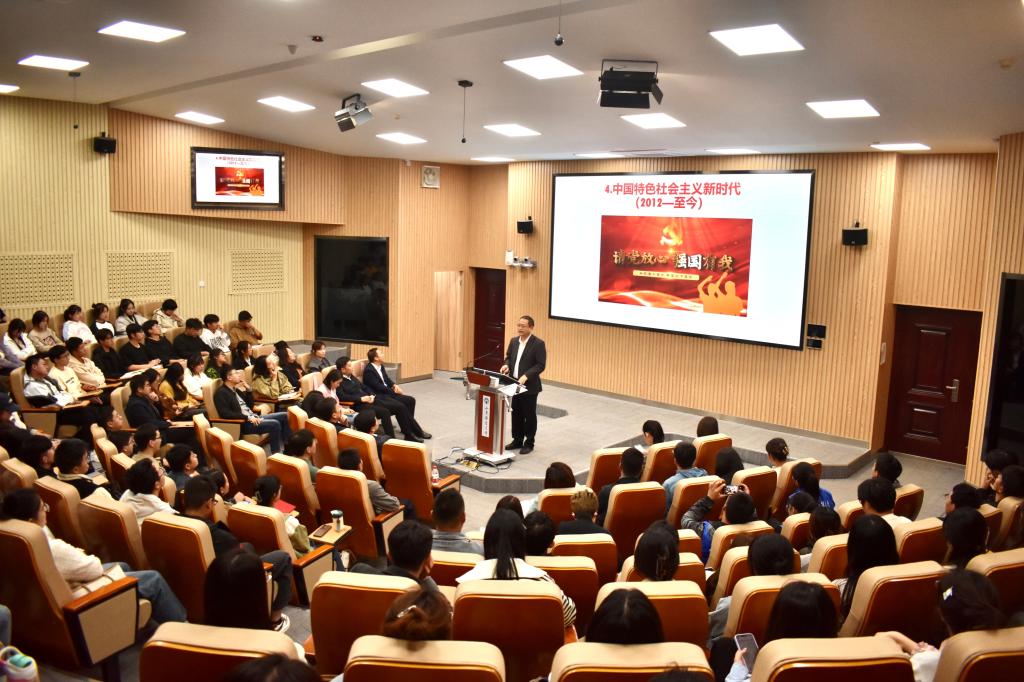 刘长军教授以《中国共产党为什么能赢得青年》为题,从“党领导中国青年运动的光辉历程”和“中国共产党赢得青年的基本经验”展开授课,回顾了从新民主主义革命时期到中国特色社会主义新时代共四个历史阶段中党的青年运动史,以及中国共产主义青年团的发展历程。总结了中国共产党赢得青年的基本经验在于高度重视青年的地位和作用、用崇高理想引领青年、用科学理论武装青年、用优良作风吸引青年、以深厚人民情怀感染青年、切实保障青年的合法权益、在实现中国梦中历练青年,引导团员和青年在深学细悟党的创新理论过程中,坚定听党话、跟党走的政治信念。