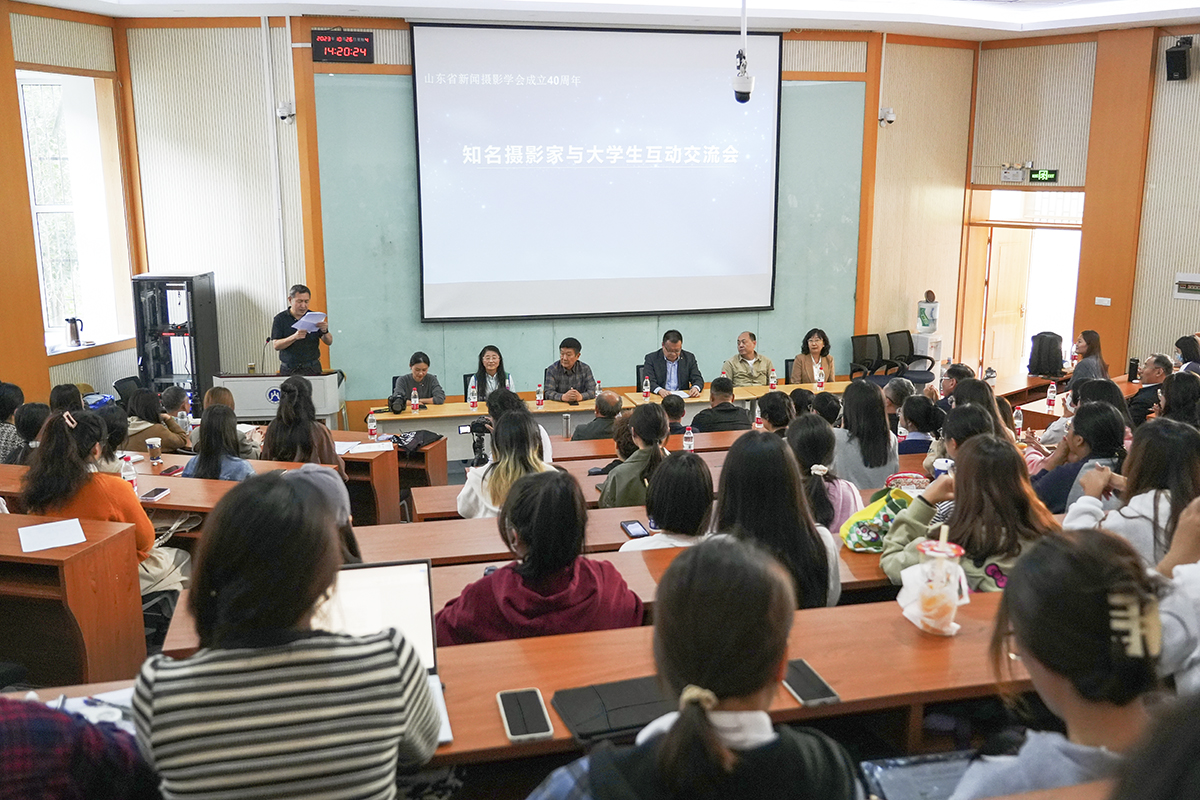 26日下午在舜耕校区举办了摄影名家与大学生对话互动交流活动。山东省新闻摄影学会荣誉会长、学术总监钱捍,齐鲁晚报·齐鲁壹点总经理助理、图片新闻中心主任、山东省新闻摄影学会副会长兼秘书长刘军,山东省女摄影家协会原副主席、菏泽日报高级记者王超英,齐鲁晚报·齐鲁壹点摄影图片编辑王媛等专家与同学们分享了各自的新闻职业成长经历以及新闻采访、策划选题等方面的经验和体会。
