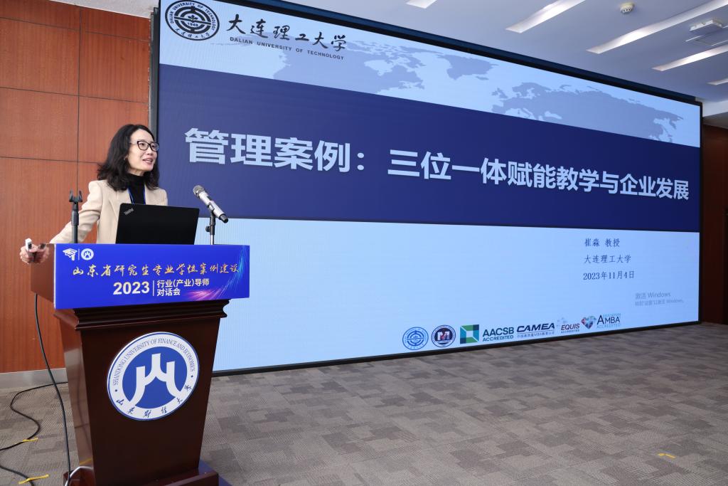 11月4日,山东省研究生专业学位案例建设行业(产业)导师对话会在山东财经大学举行。本次对话会由山东省教育厅指导、山东财经大学主办,教育部中国专业学位案例中心副主任赵瑾茹,中国管理案例共享中心副主任、大连理工大学教授崔淼,山东港口集团有限公司企业管理部部长罗剑等嘉宾出席会议,山东财经大学副校长张新出席开幕式并致辞。国家税务总局滨州市税务局、德华安顾人寿保险有限公司、济南金融控股集团、中国电信山东公司、浪潮通用软件有限公司、鲁商福瑞达医药股份有限公司、东阿阿胶股份有限公司等10余家单位以及来自全省18所高校的100余名行业(产业)导师代表、高校导师代表参加了会议。
