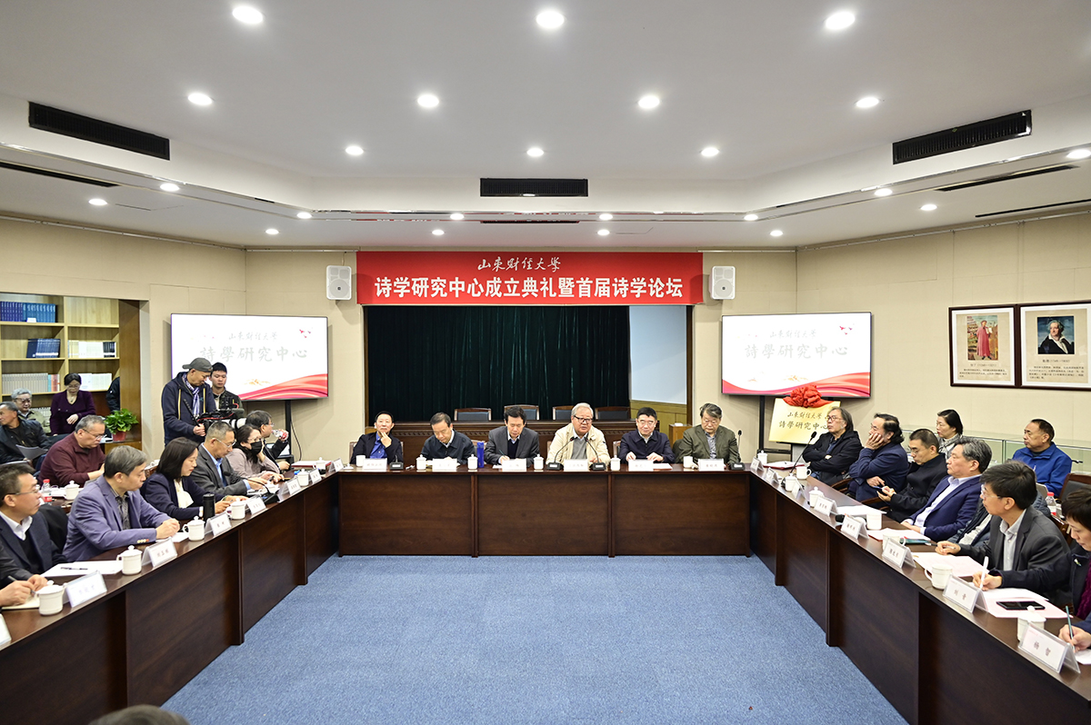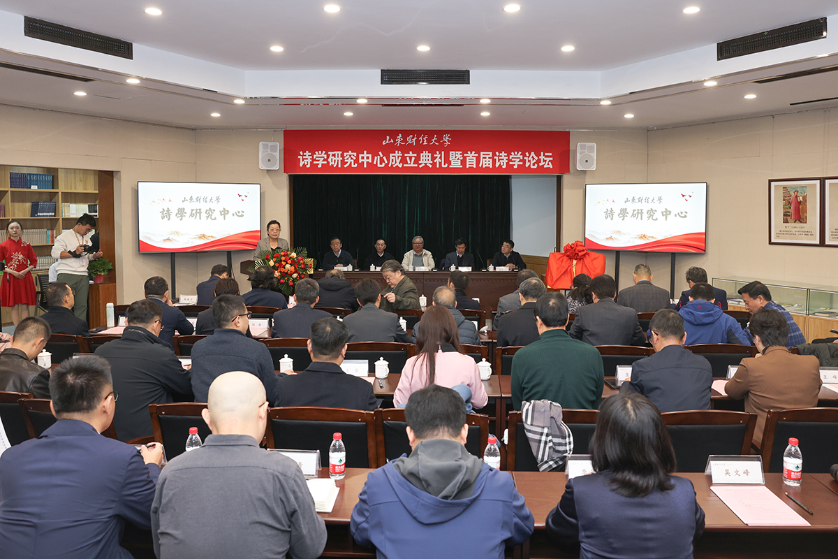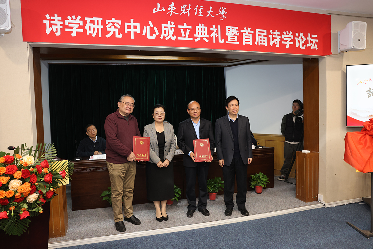 11月8日上午,山东财经大学诗学研究中心成立典礼暨首届诗学论坛在舜耕校区新落成的诗学讲堂盛大举行。