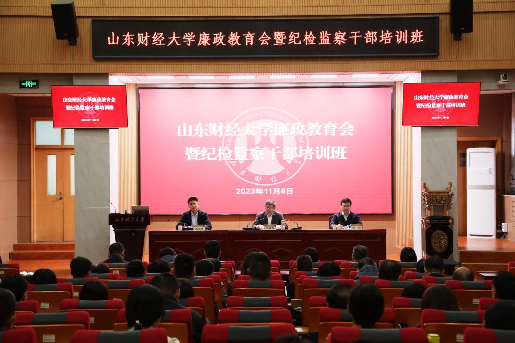 11月8日,学校在燕山校区举办廉政教育会暨纪检监察干部培训班。省纪委监委第四监督检查室副主任、一级调研员胡轶男受邀作廉政教育报告,校党委委员、纪委书记、监察专员王福岱出席会议并讲话。